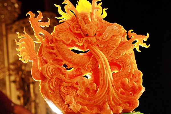 全面系统传授花、鸟、虫、鱼、龙、凤、瓜蛊、人物的食雕技法,大型展台设计与制作,盘头装饰食雕的设计制作及运用等。